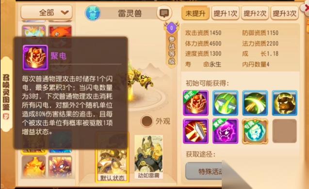 雷灵兽的“雷霆一击”兼具伤害与麻痹控制,投喂需平衡“攻击属性”与“控制触发概率”,做到“打得出伤害,控得住对手”。